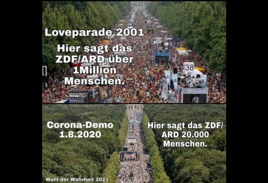 Agonizirani mainstream mediji, deformiraju istinu objavljujući lažne vijesti o broju prosvjednika na berlinskim ulicama i trgovima, te povrijeđenim policajcima s ciljem diskreditiranja prosvjeda, tvrdeći da je na prosvjedima bilo samo desetak tisuća prosvjednika. Fotografije i video snimke jasno govore da se radi o višestruko većem broju koji ne odgovara organizatorima aktualnog kaosa.