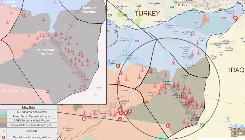 Drugim riječima, prema SDF snagama je Turska kriva što je pristala sudjelovati u diplomatskim pregovorima za rješavanje sirijske krize, umjesto da nastavi s pokušajima rušenja Assadove vlade i tako onemogući da sirijsko-iranski savez sudjeluje u borbi protiv Islamske države i oslobodi velika područja zemlje, uključujući naftom bogata područja na istoku zemlje i sjeverno od Eufrata, koja su Kurdi odredili za svoj ”ratni plijen”.