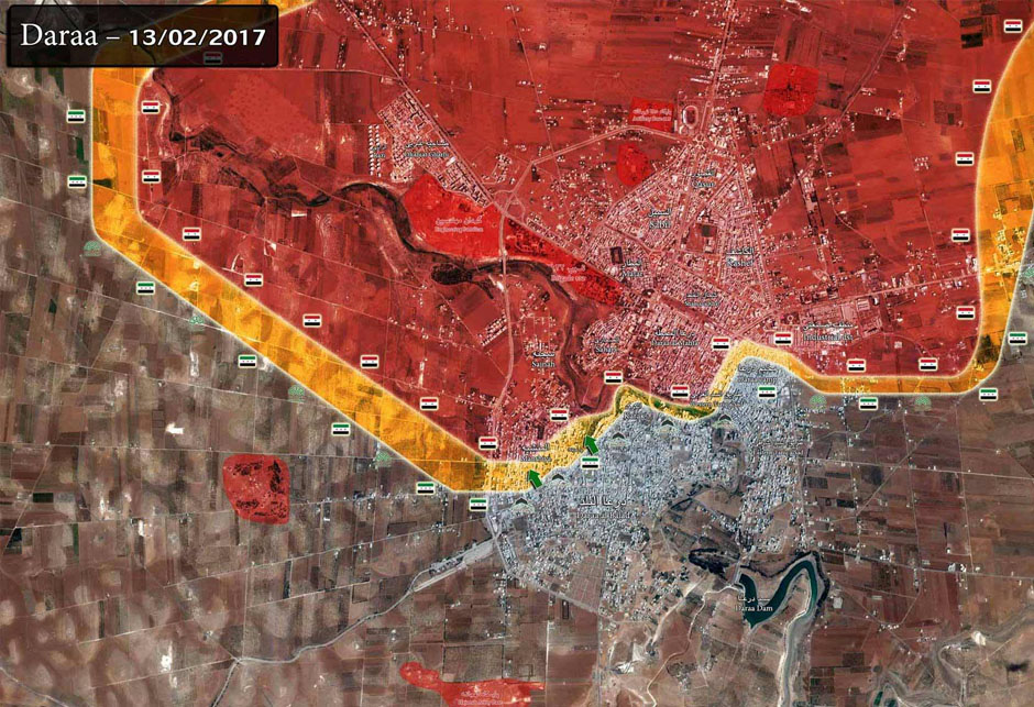 Militanti terorističke koalicije Hayat Tahrir al-Sham, novoformirane skupine koju vodi Al-Nusra Front, nakon neuspješnog napada dan prije su 13. veljače nastavili napadati sirijske vojske pozicije u području Al-Manshiya južnom dijelu sirijskog grada Dera’a. Ofenzivu su osmislili i pokrenuli ratni gospodari na terenu, zapovjednici Al-Nusra Fronta, a pridružili su im se i militanti takozvane “umjerene naoružane oporbe”.