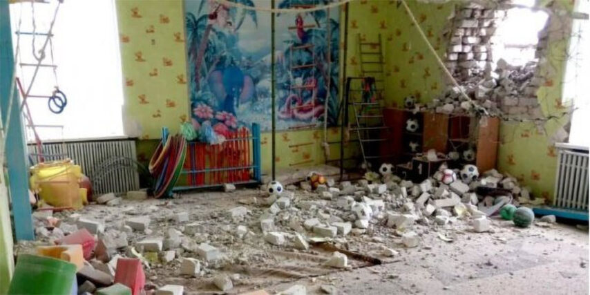 Sad kad se to ispostavilo kao još jedna laž, mediji tvrde da su Rusi počeli bombardirati sela u oblasti Lugansk i da je pogođen dječji vrtić. Samo, problem je u tome što je to loše namješteni „false flag“ napad, koji prikazuje ogromnu rupu od navodne granate dok su prozori na zgradi neoštećeni.