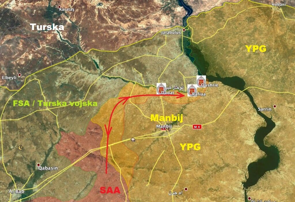Raspoređivanje sirijskih snaga na prvim crtama Manbija bez sumnje ometa Erdoganove islamističke skupine da uđu u Manbij. U međuvremenu se takozvana Nacionalna vojska, krovna skupina proturskih islamističkih milicija, nastavlja mobilizirati u pripremi za pokretanje zajedničkog napada s turskom vojskom na Kurde.