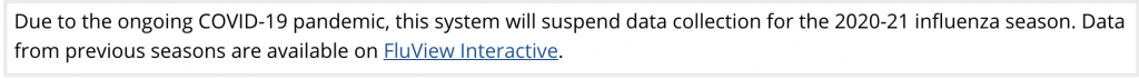U stvari, zbog Covida-19, CDC je odlučio potpuno obustaviti prikupljanje podataka za sezonu gripe 2020. – 2021. za geografsko širenje gripe. Ova godišnja interaktivna karta seže u 2003. godinu, ali zaustavili su je u svibnju 2020. godine.