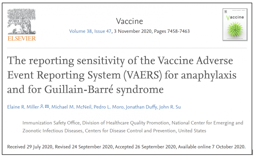 Ukratko, postoji rad koji je napisalo pet autora CDC-a, Osjetljivost izvještavanja Sustava izvješćivanja o neželjenim događajima cjepiva (VAERS) za anafilaksu i Guillain-Barréov sindrom, koji je objavljen prije godinu dana u recenziranoj znanstvenoj literaturi. U radu se tvrdi da je ozbiljne nuspojave u prošlosti prijavljeno najviše s faktorom 8,3 (poznat kao faktor premalo prijavljivanja (URF)).