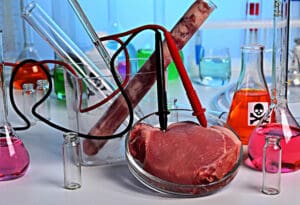 Lažni mesni proizvodi navodno ne sadrže okrutnost prema životinjama. Međutim, laboratorijski uzgojeno meso zapravo koristi nusprodukt klanja krava.