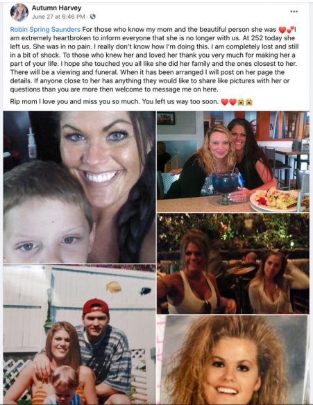 Prema objavi kasnije tog dana od Saundersove kćeri, njezino se stanje pogoršalo i ona je umrla u JIL-u.