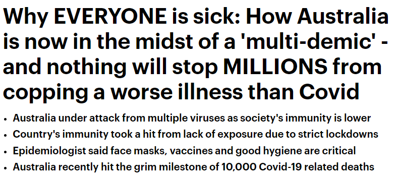 Australija je napadnuta razornim ”multidemijskim” napadom opakog koktela virusa, prema vrhunskom medicinskom stručnjaku koji kaže da je prijetnja uzrokovana lockdownom koji je smanjio naš prirodni imunitet.