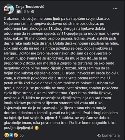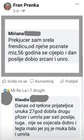 Pogledajte ove zastrašujuće priče, a ako imate sličnu koju želite podijeliti, pošaljite ju sa što više informacija na Instagram profil jab_injuries_croatia ili na email [email protected] ljudima koji ih vrijedno skupljaju za buđenje drugih ljudi i za buduće dokazne materijale. Ako je samo pola od ovoga istina, nad nama se vrši genocid nezapamćenih razmjera i što je najgore, sve se zataškava. Ovdje se postavlja pitanje ozbiljne kriminalne odgovornosti za one koji to sprovode, kao i za one koji to aktivno zataškavaju.