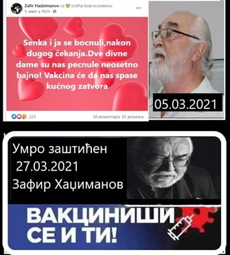 Zatim imamo nekoliko primjera iz naše regije. Zafir Hadžimanov, makedonski pjevač, sretno je objavio da se cijepio. Tri tjedna poslije umro je, prema službenim podacima – od korona virusa. Da li je taman prije smrti primio drugu dozu (prošlo je taman 3 tjedna) nije poznato.