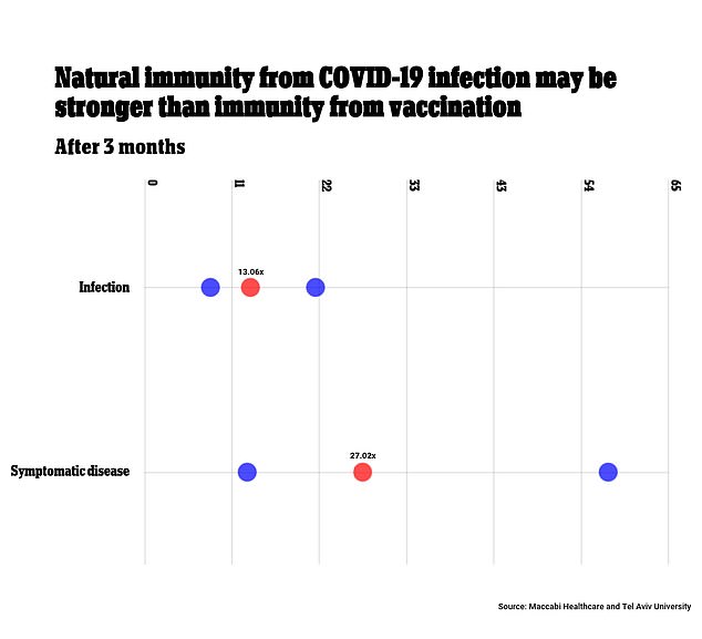 Nakon tri mjeseca, rizik od infekcije bio je 13,06 puta veći među cijepljenim pojedincima i 27 puta je veća vjerojatnost da će osjetiti simptome.
