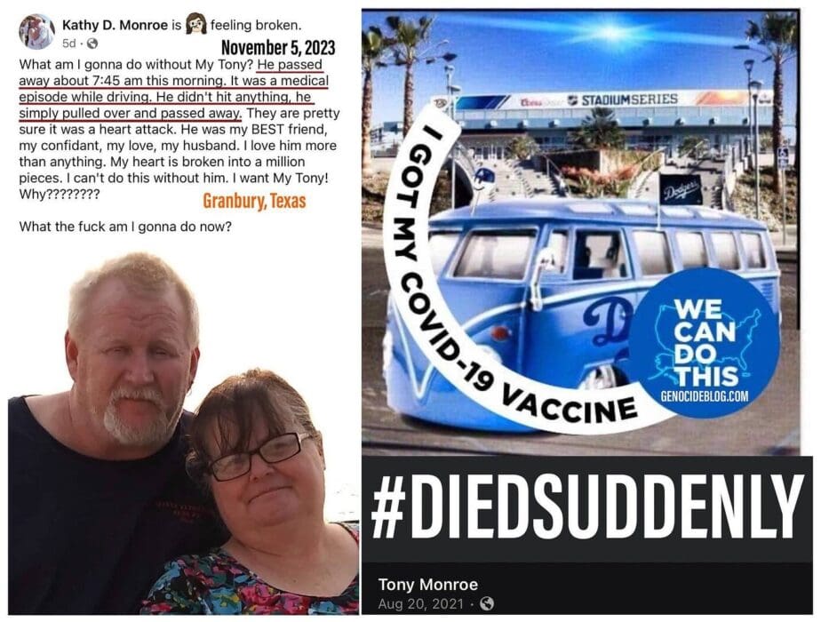 5. studenoga 2023. Granbury Teksas. Tony Monroe doživio je napadaj tijekom vožnje. Jednostavno se zaustavio svojim vozilom i preminuo na mjestu.