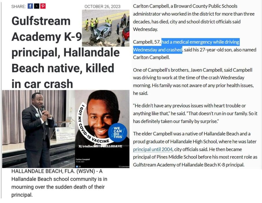 25. listopada 2023. 57-godišnji Carlton Campbell, ravnatelj Hallandale Beach K-8 također je doživio napadaj za upravljačem, doživio je sudar i nakon toga preminuo istoga dana.