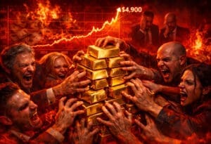 U samo deset godina, cijena zlata porasla je sa oko 1.000 USD po unci na više od 4.800 USD. Samo u 2025. godini zlato je dodalo gotovo 70 % vrijednosti — unatoč relativno visokim kamatnim stopama (koje obično odbijaju investitore od zlata jer ne donosi kamatu). To je ogromno treptanje crvenog alarma koje jasno pokazuje da je nešto — duboko — slomljeno u današnjem monetarnom sustavu.