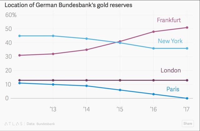 No, Bundesbanka je odluku objasnila sljedećim priopćenjem: “S obzirom na činjenicu da Francuska, poput Njemačke, kao nacionalnu valutu ima euro, Bundesbanka, ako bude potrebno, više ne ovisi o Parizu kao financijskom središtu za razmjenu zlata u međunarodne rezervne valute. Stoga je sada prilika da se njemačke zlatne rezerve iz Pariza mogu vratiti u Frankfurt.”