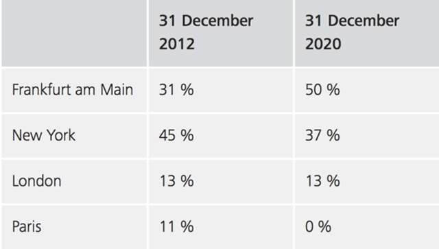 Tijekom posljednjih pet godina je Središnja banka Njemačke prebacila svih 374 tona iz Pariza i 300 tona iz New Yorka.