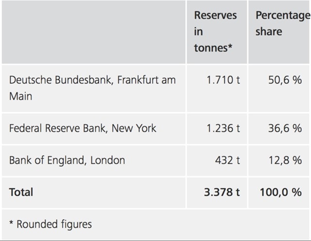 Prema tabelama dolje se vidi da je povrat zlata Bundesbanke u domovinu bio uspješan, ali je u isto vrijeme izazvao veliku raspravu o tome koliko je sigurno čuvanje zlata u trezorima središnjih banaka. Odluka da se zlato vrati u domovinu je također potvrdilo sumnje onih koji sumnjaju da SAD ulazi u mutne poslove sa zlatnim rezervama.