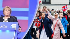 Erna Solberg, početkom 2000-ih prozvana „čelična Erna“ zbog svojih čvrstih imigracionih stavova, kazala je da izbjeglice moraju da se uklope u nova društva.