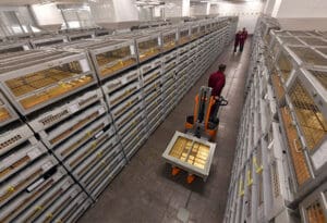 Na prvi pogled, zlatna poluga izgleda mala, ali nije ju lako podići: teži oko 12-13 kg. Poluge su pažljivo pohranjene u željeznim spremnicima (20 poluga u svakom), a svaki spremnik je zapečaćen.