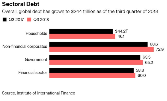 Kako je ranije ovog tjedna izvijestio Bloomberg, globalni dug je dosegao rekordnih 244 000 milijarde dolara, što je 318 posto svjetske ekonomske proizvodnje.