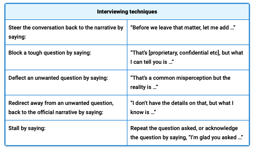 AMA je mogla uputiti svoje članove da se jednostavno drže činjenica i budu iskreni – a u nekim odjeljcima to i čini – ali tu nije kraj. Umjesto toga, AMA pruža cijelu stranicu s uputama o tome kako voditi razgovor i kako blokirati, odvratiti i zaustaviti kada se suočite s teškim pitanjima gdje bi iskren odgovor zapravo mogao negirati službenu priču.