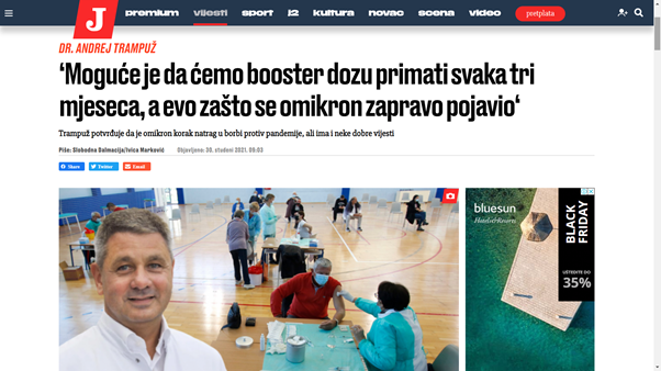 Doktor Andrej Trampuž, Slovenac koji radi u Berlinu, oglasio se u Hrvatskim medijima i mrtvo-hladno rekao da ćemo se vjerojatno morati cijepiti svakih 3 mjeseca. Osim toga, članak je naravno začinjen urednim vrijeđanjem i pljuvanjem po „antivakserima“, debatiranjem sa nekim imaginarnim sugovornikom, praznim frazama o tome kako se šire dezinformacije, i o tome koliko su cjepiva sigurna. Već standardna propaganda mainstream medija, u ovom slučaju Slobodne Dalmacija i Jutarnjeg Lista. Da je po njegovom, vjerojatno bi bilo najbolje da svi konstantno hodamo okolo sa infuzijskom bocom i iglom zabodenom u kožu, pa da se cijepimo 24 sata na dan bez prekida.