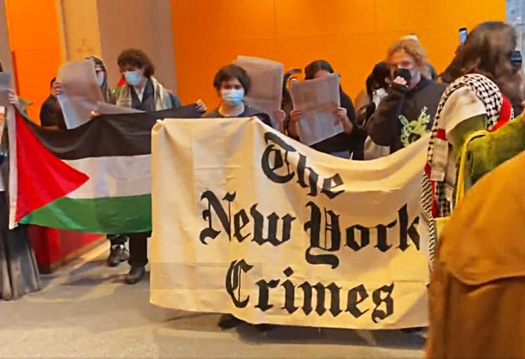 BREAKING: Media workers have taken over the lobby of the New York Times headquarters in NYC in protest of their biased coverage of Palestine.