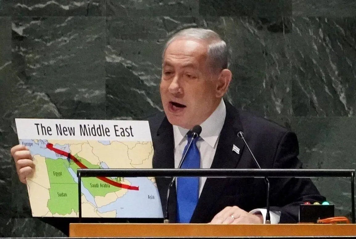 Još jedna provokacija: Netanyahu se obratio 78. Generalnoj skupštini Ujedinjenih nacija u New Yorku 22. septembra 2023. držeći kartu sa koje je Palestina izbrisana [BRYAN R. SMITH/AFP via Getty Images]