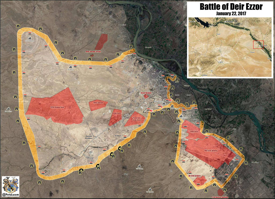 Tijekom protekla tri dana je sirijska vojska uz velike poteškoće uspjela povratiti dio teritorija između vojne zrakoplovne baze i zapadnog dijela Deir Ez-Zora, gdje se nalaze u potpunom okruženju terorista.