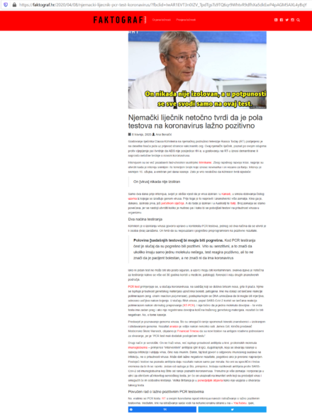“Kao obrazloženje netočnosti priložili su tekst koji je nastao tri mjeseca prije navedenog teksta 8.travnja 2020. godine koji potpisuje Ana Benačić, A U KOJEM FAKTOGRAF OSPORAVA TVRDNJU NJEMAČKOG LIJEČNIKA DA JE POLA TESTOVA NA KORONAVIRUS LAŽNO POZITIVNO.”