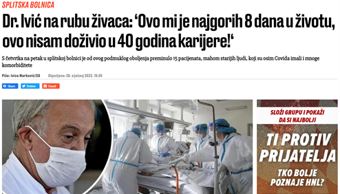 Njegova dramatična izjava glasi: „Ja u svom životu, u svom radnom vijeku od 40 godina, nikada nisam vidio teže kronično bolesne ljude, koji uz to još nisu ni cijepljeni. Ti ljudi dolaze umrijeti u bolnicu, jer se njih ni na koji način ne može spasiti. To su ljudi bez tlaka, bez kisika, u groznom stanju i kojima nikakva moderna medicina ili naša volja ne mogu pomoći, kazuje dr. Ivić.“