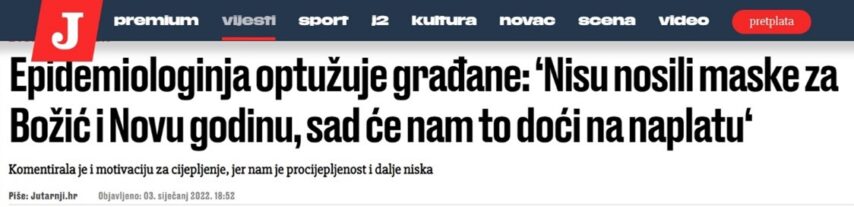 Tamo je izjavila kako „Znamo svi da je cijepljenje najveće dostignuće čovječanstva.“ i „Blagdanska okupljanja i nepridržavanje mjera mogli bi nam doći na naplatu za 10-ak dana“.