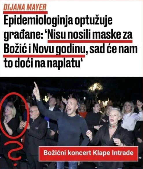 Naravno, nama ne smeta što se ona zabavljala na koncertu, ali smeta nam njezino nevjerojatno licemjerje i promoviranje pandemije u koju očito ni sama ne vjeruje. Plaši nas i uvjerava da se trebamo bojati, strašnog virusa. Za čiji interes i po čijem nalogu? Ovakve stvari su nedopustive. Dijana Mayer, kad ova plandemija prođe, odgovarati ćete.