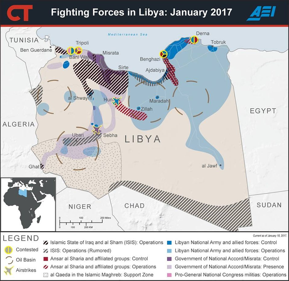 Fayez Al-Seraj, koga podržava EU, ne kontrolira cijelu zemlju, te u skladu s tim ni teritorije kuda prolaze migracijski tokovi, krijumčarenje oružja i trgovina ljudima. Također ne postoji dovoljno jaka vojska i policija koja može osigurati takvu kontrolu.