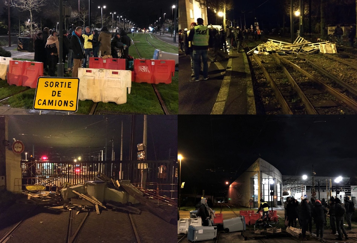 Velika barikada je podignuta u gradu, zbog čega je promet paraliziran. U odsutnosti radnika i drugih aktivista štrajkačkog pokreta, za blokade se brinu Žuti prsluci i mladi koji su se pridružili borbi. Blokirani su dokovi južno od mosta „Cheviré“, naplatne kućice na izlazu iz autoputa, dok je četvrti Saint-Nazaire ispred tvornice „Airbusa“ podmetnut požar.