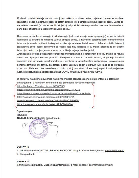 I zadnje pitanje: Kako bismo bili što objektivniji u donošenju vlastitog mišljenja, na kojem se tako puno inzistira, da li bi se ovdje mogao postaviti link na originalno pismo poslano u HZJZ? Ili sken istoga?