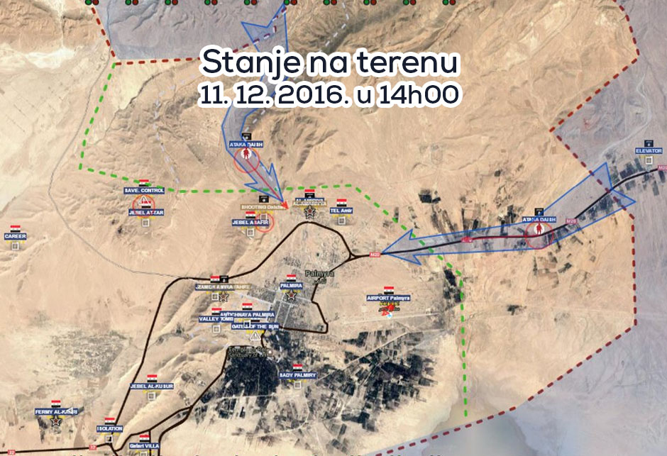 Neprijatelj je pokušao preuzeti kontrolu nad komunikacijskim linijama jedinica sirijske vojske raspoređenim u istočnom Homsu, a napad je olakšan i samom konfiguracijom linije fronta. Međutim, trećeg dana ofenzive jer bilo jasno da su militanti “kalifata” imali prilično ograničene snage, tako da izravni napad i ulazak u Palmiru zapravo nije uspio. Sljedećih sati, najviše dana ćemo vjerojatno svjedočiti pojačanim zračnim udarima protiv terorista u istočnom Homsu, a onda će dežurni crtači karata brisati “crno područje” i pomjerati ga na sjever ili istok, kao što je nekoliko puta bilo sa Sadadom ili cestom Khanasser-Itriyah.