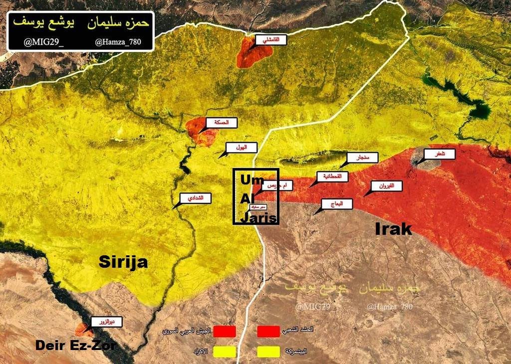 Umm Al-Jaris se nalazi se točno na granici pokrajine Ninive sa sirijskom pokrajinom Hasaka, koju u ovom trenutku kontroliraju većinom kurdske “Sirijske demokratske snage” (SDF), koje pomažu SAD.