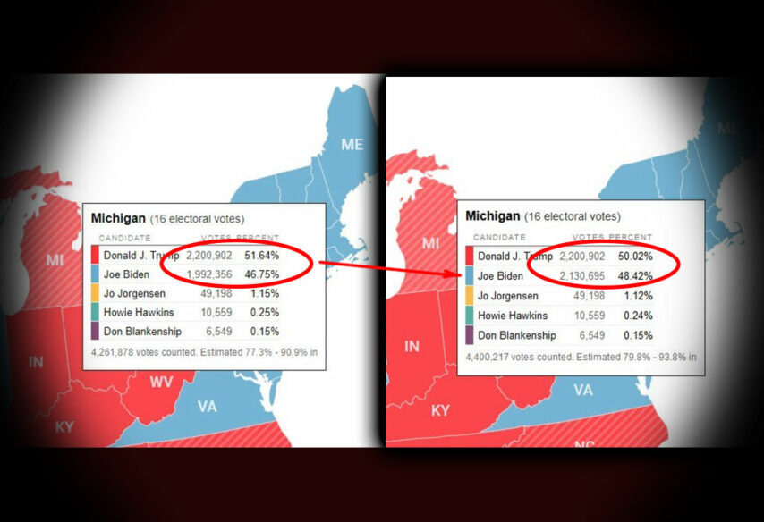 16:36 – Prema najnovijim informacijama događa se nevjerojatna stvar u Michiganu. Nakon izbrojanih novih 138.339 glasova, svih 100% je otišlo Bidenu.