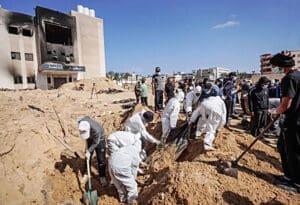Šesti uzastopni dan iskopavanja tijela u južnoj Gazi, dužnosnici Palestinske civilne obrane u četvrtak su otkrili zastrašujuće nove detalje o masovnim grobnicama oko bolnica Nasser i al-Shifa.