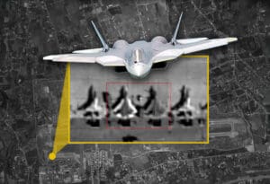 Fotografija od 23. veljače koju je snimio satelit EROS-B, koji je stavljen u orbitu putem ruske rakete, prikazuje dva Su-57, pored dva druga Sukhoia u Hmeymimu.