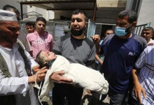 “Netanyahu i ministru obrane, je li ovo dijete vaša meta?” Upitao je ožalošćeni otac držeći mrtvog sina Ibrahima Al-Rantisija, koji je ubijen u izraelskom zračnom napadu u Rafahu.