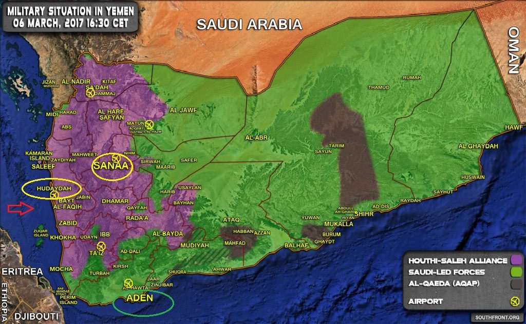Na temelju podataka iz većine jemenskih izvora i zemalja “Zaljevskog vijeća za suradnju” se govorilo o pripremanju ofenzivu saudijske koalicije na Al-Hudaydah, strateški važnu luku, drugu nakon Adena, na obali Crvenog mora, preko koje prolazi opskrba za Hutije i snage odane Abdullahu Salehu oružjem i streljivom, a za civilno stanovništvo Sane humanitarne pomoći i hrane.