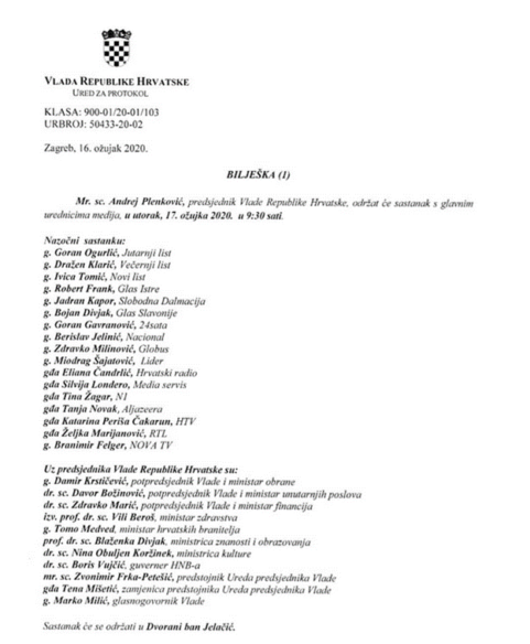 Zanimljivo, samo mediji sa tajnog sastanka u Dvorani bana Jelačića održanog 17. 01. 2020. s Vladom, dobiše informaciju o ovoj odluci EU suda za ljudska prava.