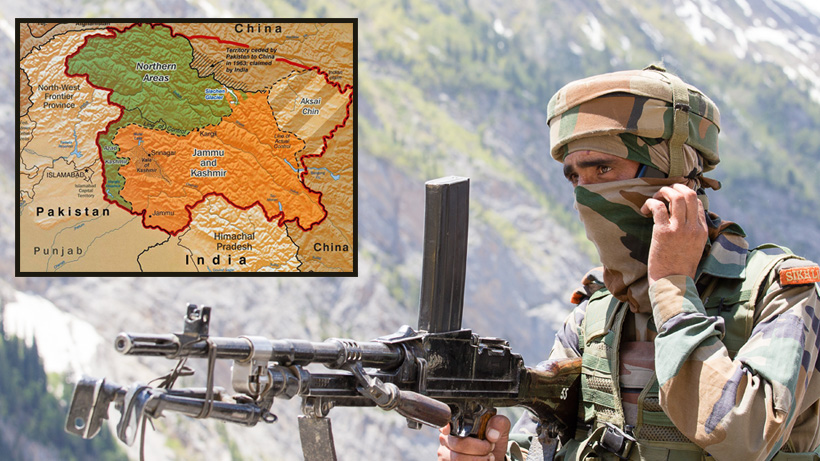 U Kašmiru je vladar bio hinduista, a većina stanovništva su bili muslimani. Vladar Kašmira je odugovlačio sa odlukom, verovatno se nadajući da će da dobije nazavisnost ili barem autonomiju. Kada su severnu granicu Kašmira prešla naoružana muslimanska plemena, maharadža je to nazvao invazijom i zamolio Indiju za pomoć. Nekoliko dana kasnije kada je potpisan dokument o priključenju Kašmira Indiji, indijska vojska je došla na teritoriju Kašmira. Pakistan je protestovao protiv toga i do danas nije priznao Kašmir za deo Indije. Godine 1948. ustanovljena je linija prekida vatre koja je podelila Kašmir na severnu, pakistansku, i južnu, indijsku polovinu. Godine 1962, u sukob se umešala treća država, Kina. Ona je ušla u oružani sukob sa Indijom, poznat pod imenom Kinesko-indijski rat. Posledica ovog rata je okupacija regiona Aksai od strane Kine. Između 1965. i 1971. nastali su novi indijsko-pakistanski konflikti. Za vreme tih konflikata Indija je izvojevala značajnu pobedu na istoku Pakistana, tj. na terenu današnjeg Bangladeša. U Kašmiru je rat trajao sve do 1972. godine, kada je Indija vratila Pakistanu oduzete teritorije. Sada ovaj sukob ima veći značaj jer su obe države postale nuklearne sile. Pakistan i Indija često razmenjuju vatru u oblasti Kašmir koja je podeljena između njih 1947. a na koju obe zemlje polažu prava u celini. Indija optužuje Pakistan da tajno podržava upade oružanih pobunjenika u deo Kašmira pod kontrolom Nju Delhija glavnog grada Indije, što Islamabad glavni grad Pakistana stalno demantuje. Druge velike vodeće sile sa nevericom posmatraju okrašaje u Indiji i Pakisatnu, strahujući od nuklearnog napada koji bi mogao da izazove po proceni agenacija do 12 miliona žrtava.