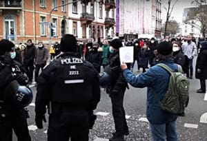 U “najslobodnijoj Njemačkoj svih vremena” sada je društveno prihvatljivo prijetiti vladinim kritičarima “upotrebom oružja”. Ovo je policijski izraz. Duden to definira na sljedeći način: “Upotreba oružja, posebno vatrenog oružja”. Drugim riječima: grad od 40.000 duša može dopustiti da se puca prema mirnim, nenaoružanim građanima koji zaobiđu zabranu okupljanja.