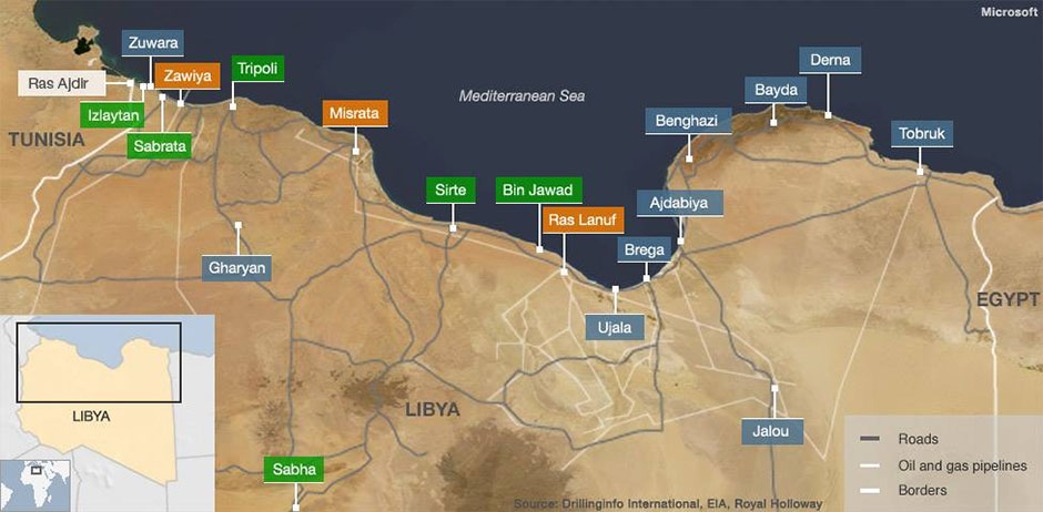 “Slučajno” ili ne, 15. ožujka je Libijska Narodna Armija generala Haftara oslobodila naftne terminale Al-Sidra i Ras Lanuf, čime je nanijela teške poraze islamističkim milicijama povezanim s Al-Qaedom, koje podržavaju Katar, Turska, Saudijska Arabija i Zapad, a posebno Italija.