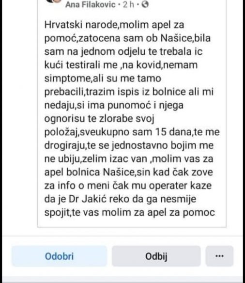 Dobih, kao i mnogi, poruku, vapaj iz bolnice u Našicama.  Isti kruži mrežama, a i sama sam ga proslijedila po našoj grupi.