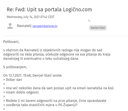 Pa čemu onda ovakve drastične mjere? Obratili smo se emailom da dobijemo odgovor od ravnatelja Mićovića, koje je opravdanje za te mjere. Prvo su nas ignorirali, zatim obećali odgovor koji nikad nije stigao.