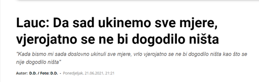 Zamislite do čega smo došli, da jedna Albanija ima više slobode od Hrvatske. I što će se desiti, mislite li da će Albanci masovno umirati nakon sezone. Neće, ništa se neće dogoditi. Uostalom i u Hrvatskoj, Gordan Lauc, znanstvenik i član vladinog Savjeta, kaže ako sad ukinemo sve mjere da se vjerojatno ne bi dogodilo ništa.