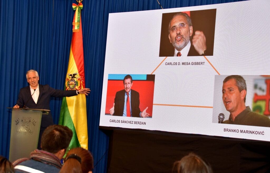 “Carlos Mesa djeluje uz financiranje Branka Marinkovića i političko obrazovanje Sáncheza Berzaína. Ubojice i zločinci iz El Alta, Sorata i Warisata čine savršeni trokut”, objasnio je García Linera na konferenciji za novinare.