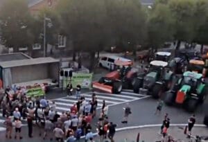 Ovoga tjedna su se belgijski poljoprivrednici i njihovi pristaše okupili u stotinama ako ne i tisućama ispred gradske vijećnice u Hoogstratenu. Video prikazuje prosvjednike kako pjevaju oko zapaljenih guma dok se pale sirene.